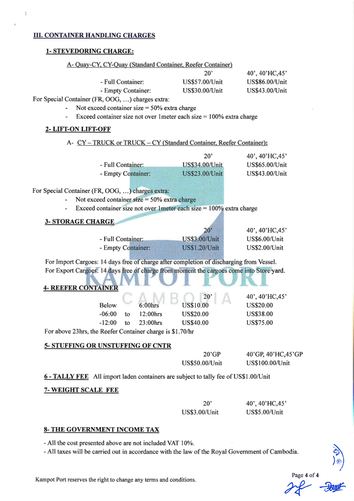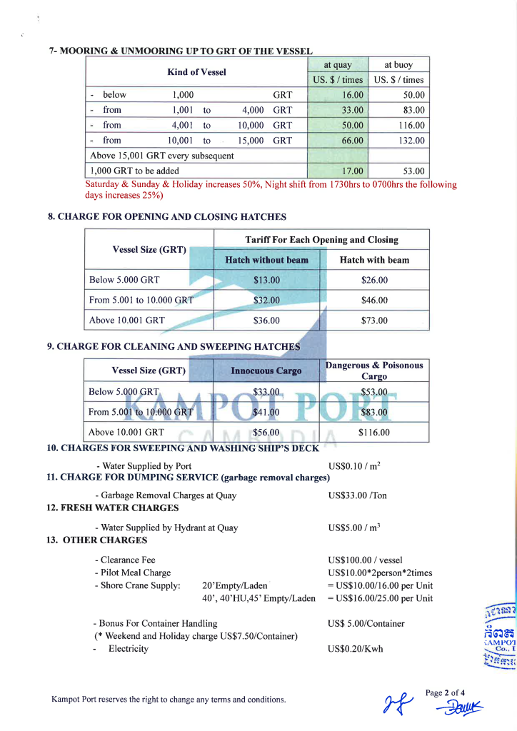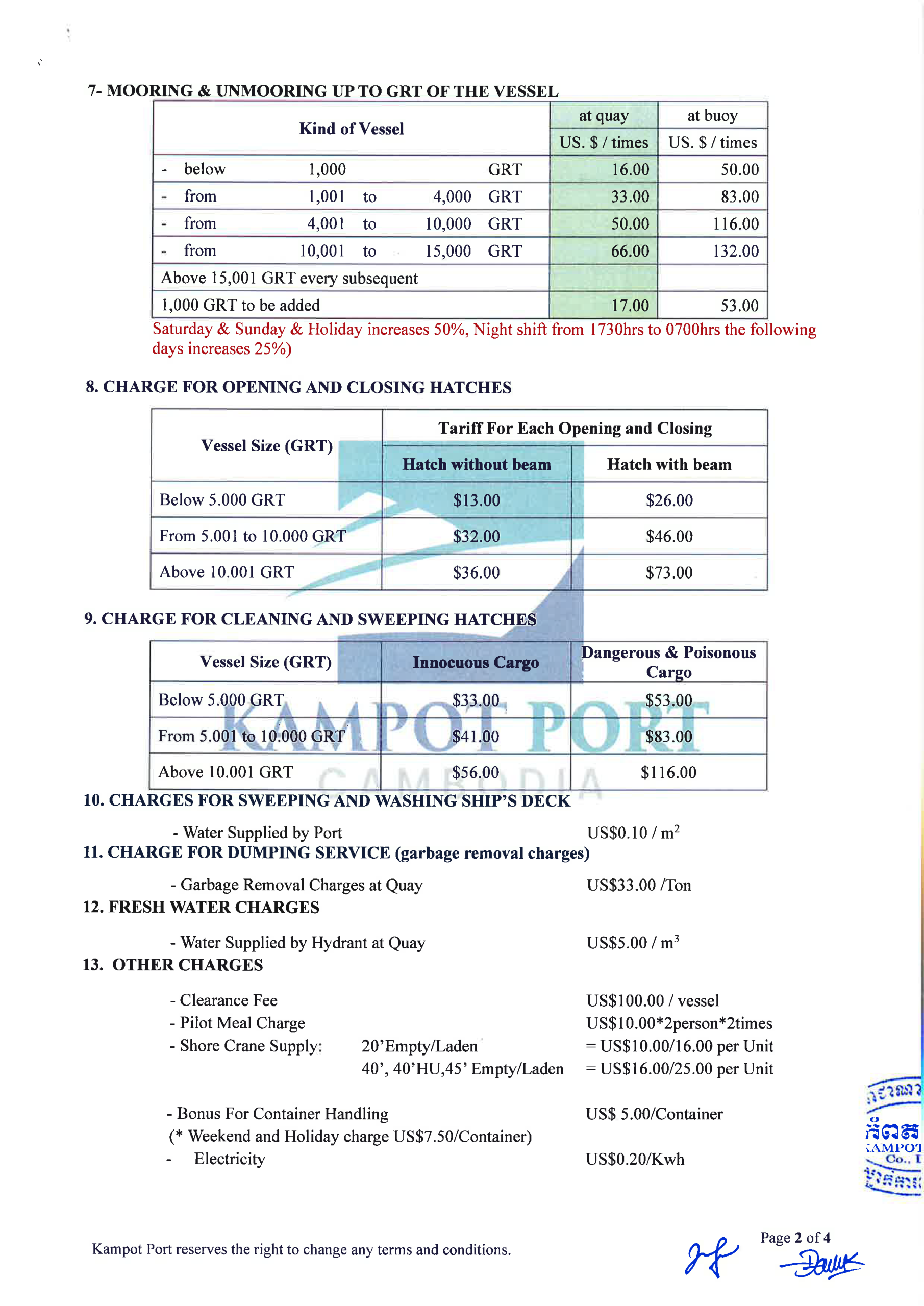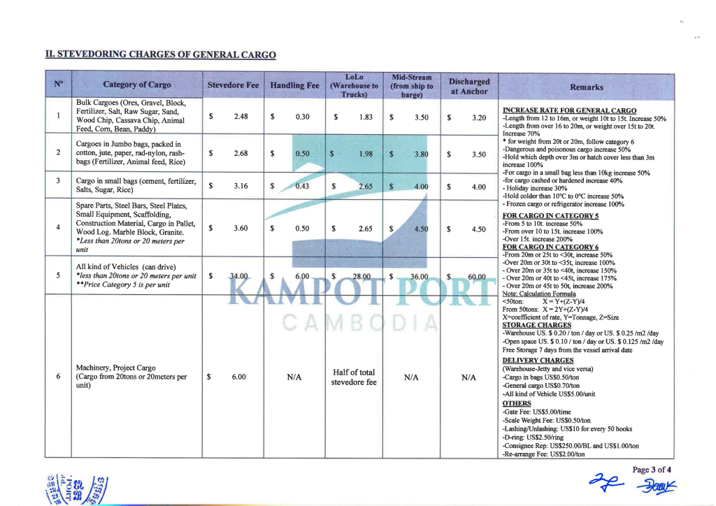 ANNOUCEMENT NEW TARIFF UPDATE AT KAMPOT MULTIPURPOSE PORT