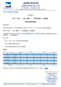公告关于 东莞(中国)- 卡莱(越南)– 贡布国际港口(柬埔寨) 新集装箱航线服务