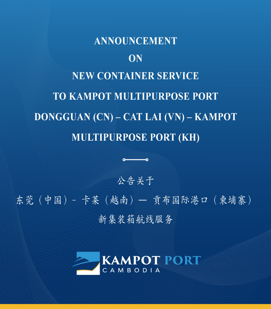 公告关于 东莞(中国)- 卡莱(越南)– 贡布国际港口(柬埔寨) 新集装箱航线服务